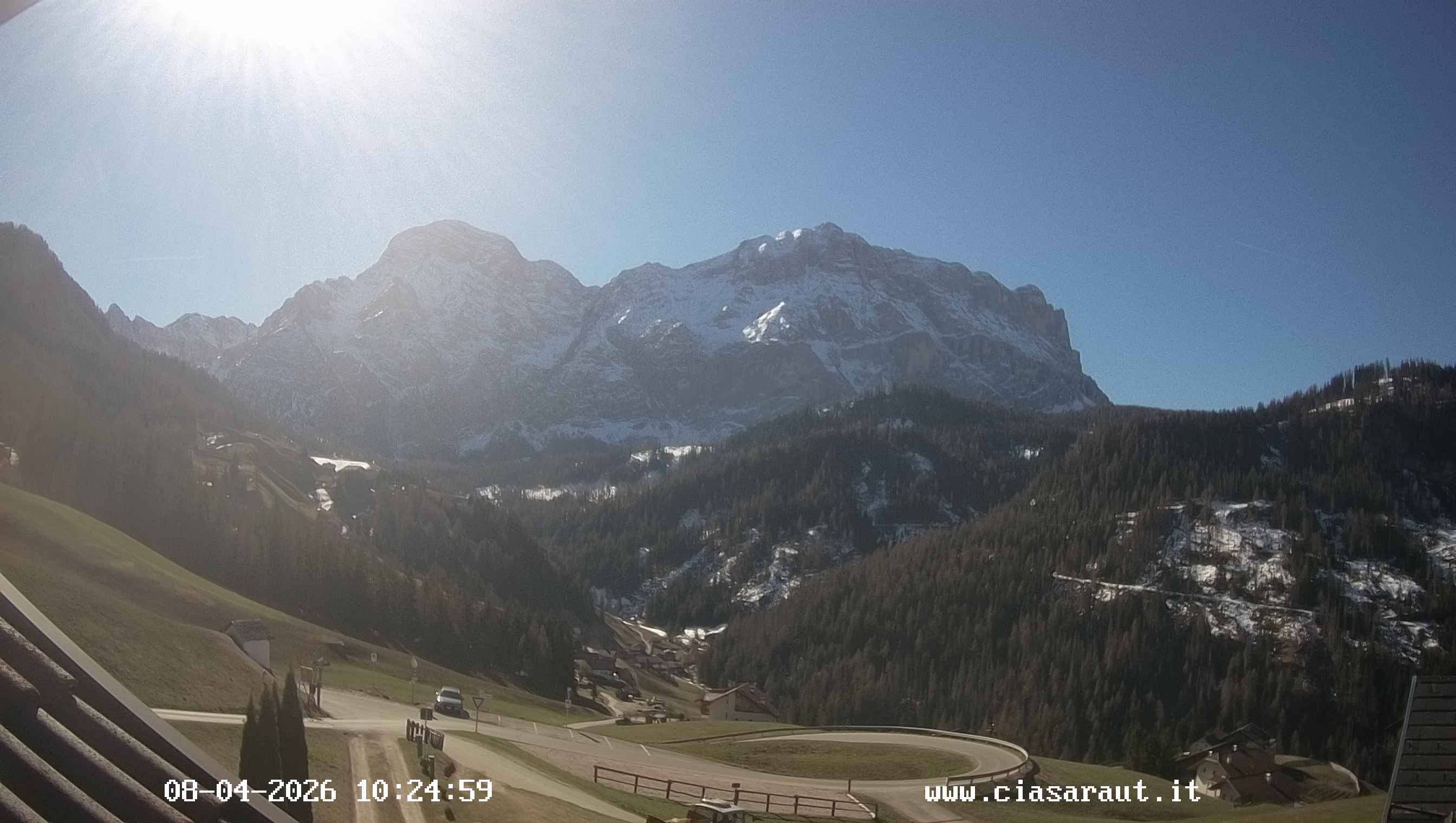 - 2 Balkonen mit der Aussicht zum Kreuzkofel, Ritkreuz ,Peitlerkofel und den Stall